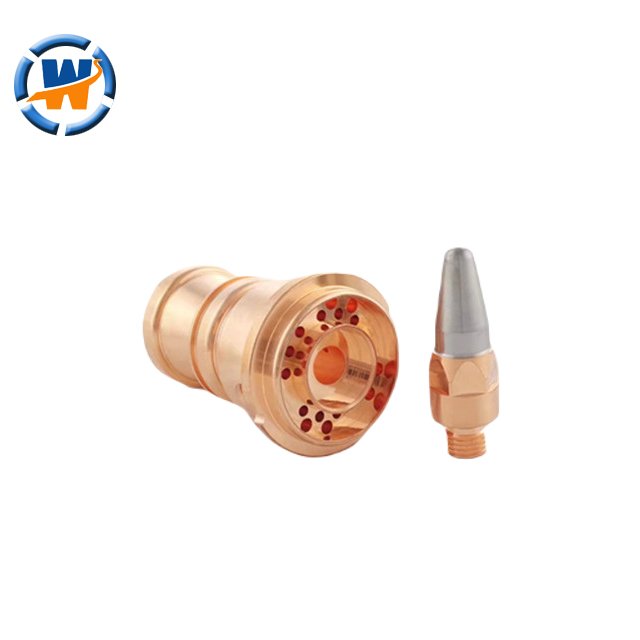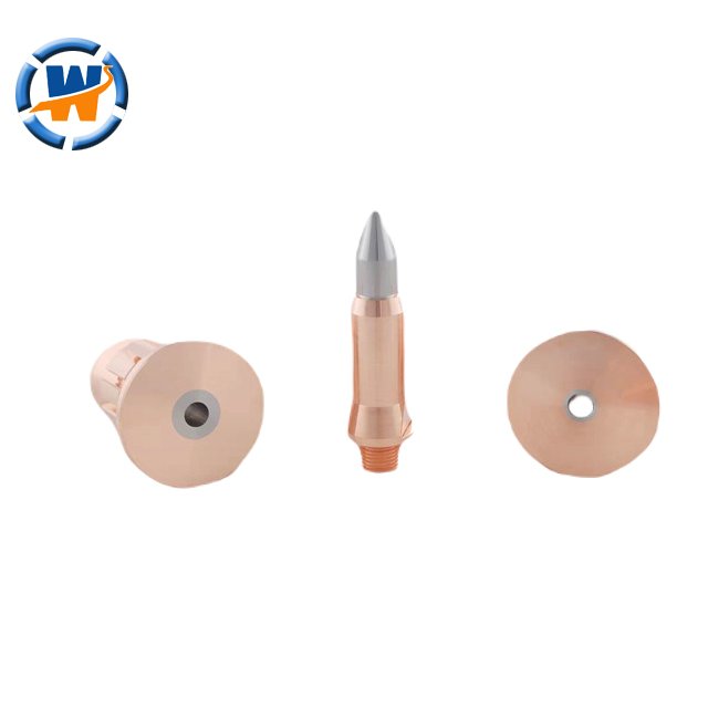 Our plasma nozzles are made from virgin tungsten and copper materials, undergoing a special densification process. This results in rapid arc initiation, stable voltage, and a void-free internal structure. A unique casting method ensures a seamless bond between the tungsten and copper, making them widely used in spray guns from companies like BGT, FST, METCO, and AMT. This ensures easy and stable arc initiation of the tungsten electrode, minimal ablation, and a long cathode lifespan. They offer excellent thermal conductivity and balanced performance.